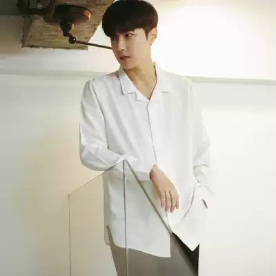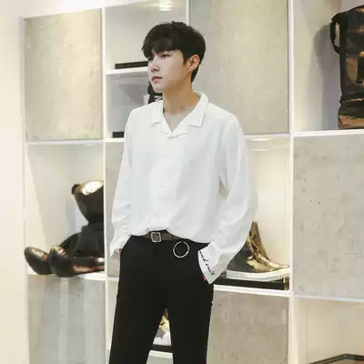 Embroidered white shirt men's summer Korean version of the trend handsome casual shirt Port wind loose hanging Cuban collar long-sleeved inch shirt