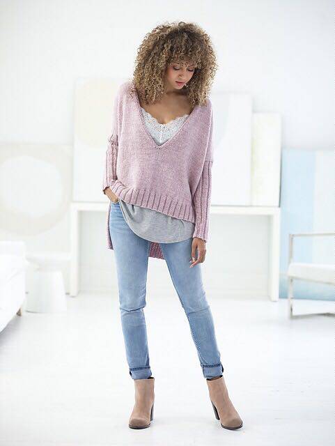 Sweet potato lady V neckline sweater long front short text note translation weaving illustration Unfinished product Remarks letterbox