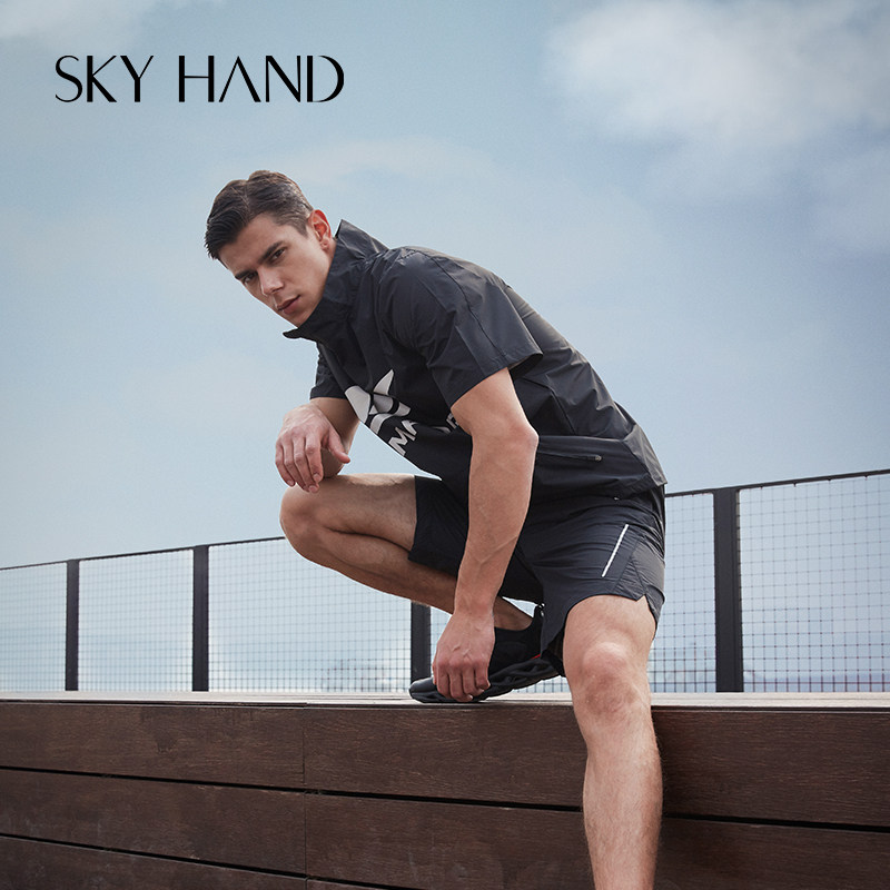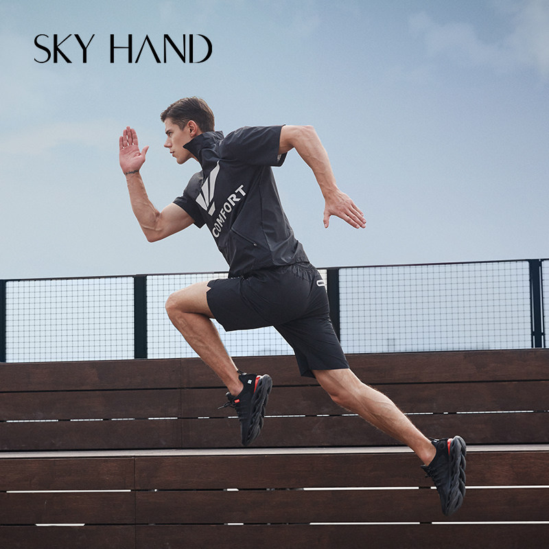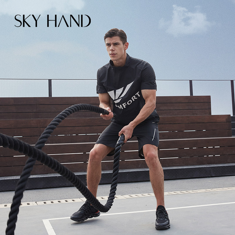 SKYHAND sweat suit men's spring and autumn short-sleeved sweat suit sportswear suit fitness weight loss sweat suit