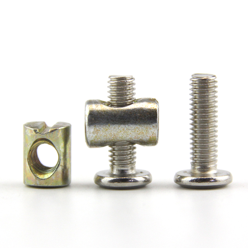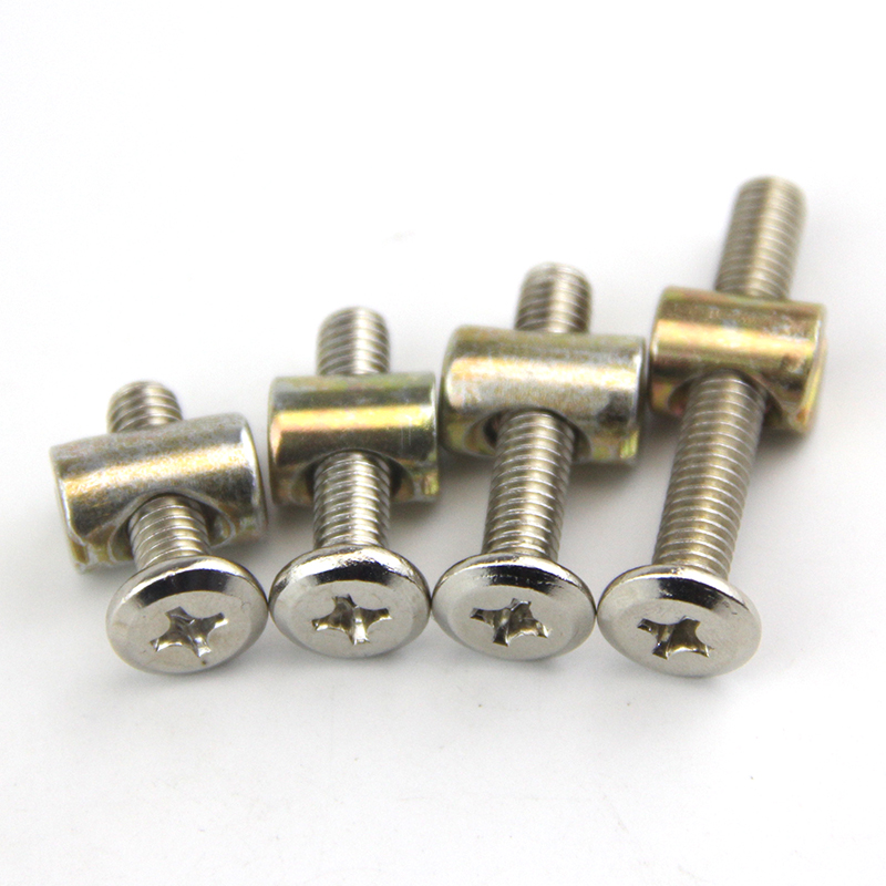 Nickel Plated Large Flat Head Cross Furniture Children's Bed Screw Accessories Cross Hole Nut Bed Connection To Lock Wire M6M8