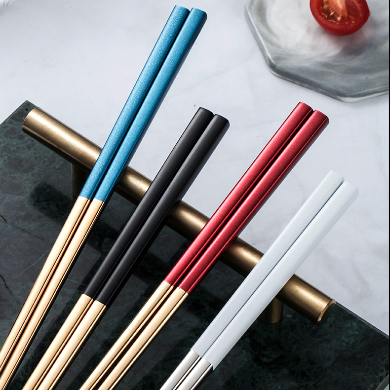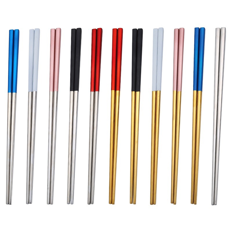 A pair of silver 304 stainless steel chopsticks a pair of black silver 304 stainless steel chopsticks a pair of pink silver 304 stainless steel chopsticks a pair of blue silver 304 stainless steel chopsticks a pair of red silver 304 stainless steel chopsticks