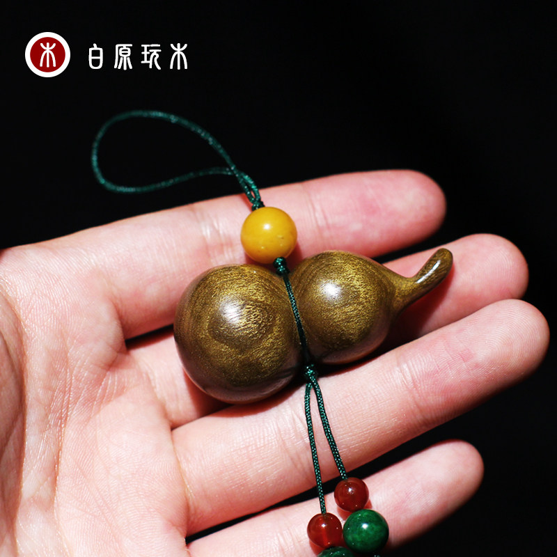 Gold silk Nan wood small gourd mobile phone bag pendant female rosewood boutique car keychain huanghuali cliff cypress small pendant