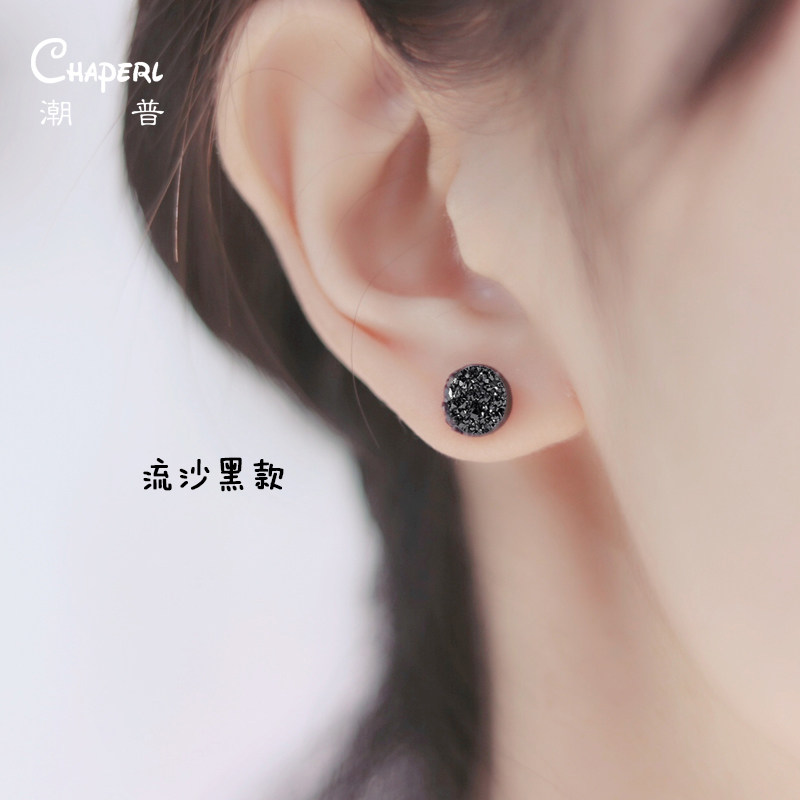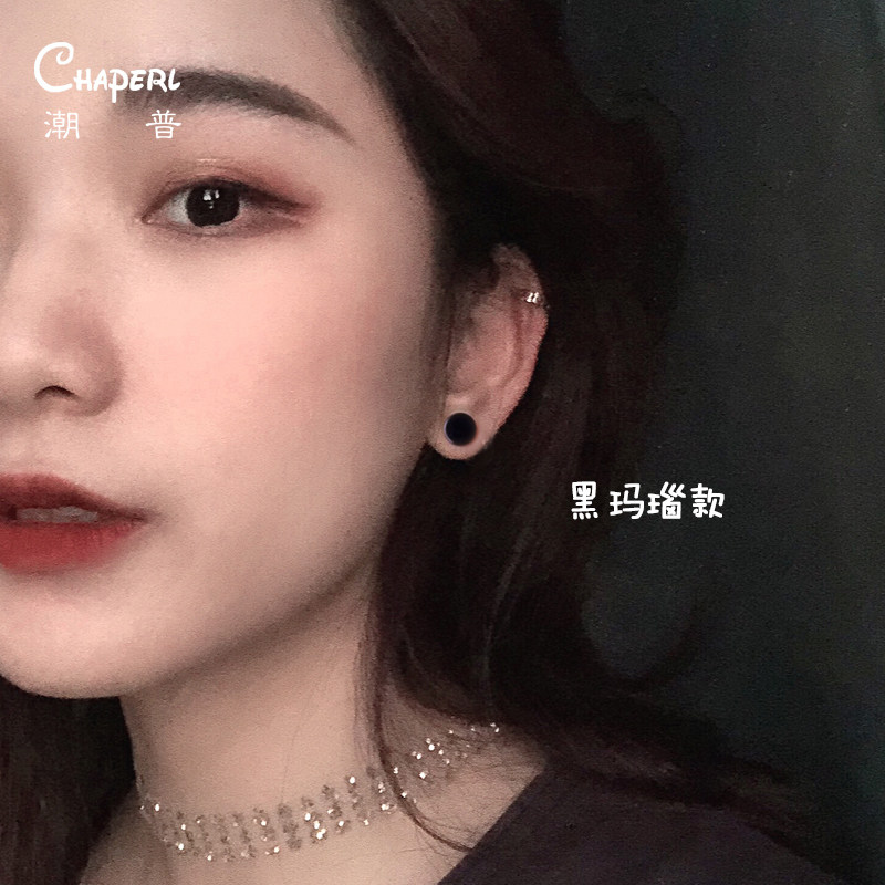 Pure silver ear nail woman 2022 new wave black agate single retro black ensemble brief lukewarm man earrings earrings