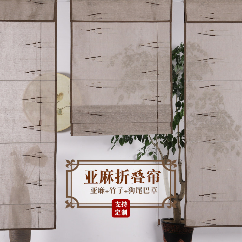 one thousand Chuen Custom Hemp Style Curtain Tea Room Retro Zen Imagery Shading Roller Blind door curtain Decorative Curtain
