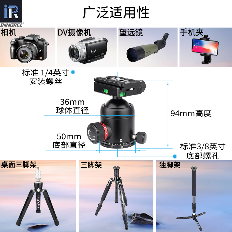 K36 professional spherical gimbal panoramic aluminum alloy damping ball table micro-single-eye camera anti-camera tripod camera photography general