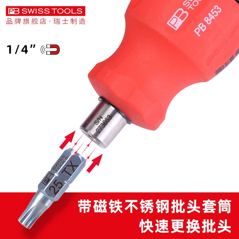 Swiss PB ratchet screwdriver set interchangeable head imported multi-function short handle screwdriver short thick change cone cross word