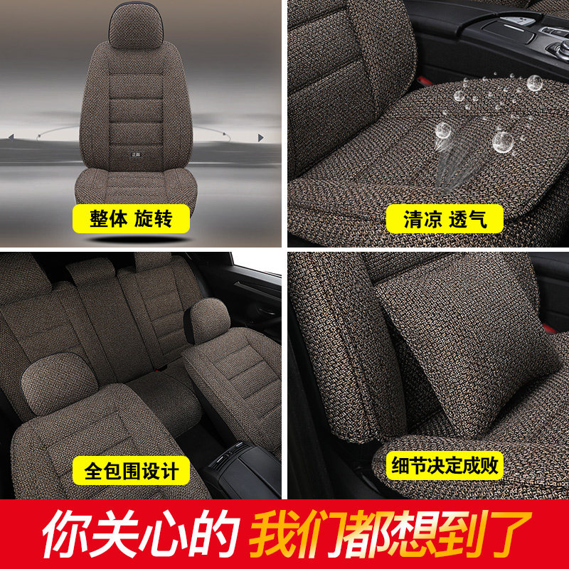 2021 new linen seat cushion fully surrounded special car summer cushion four seasons universal cotton and linen fabric seat cover