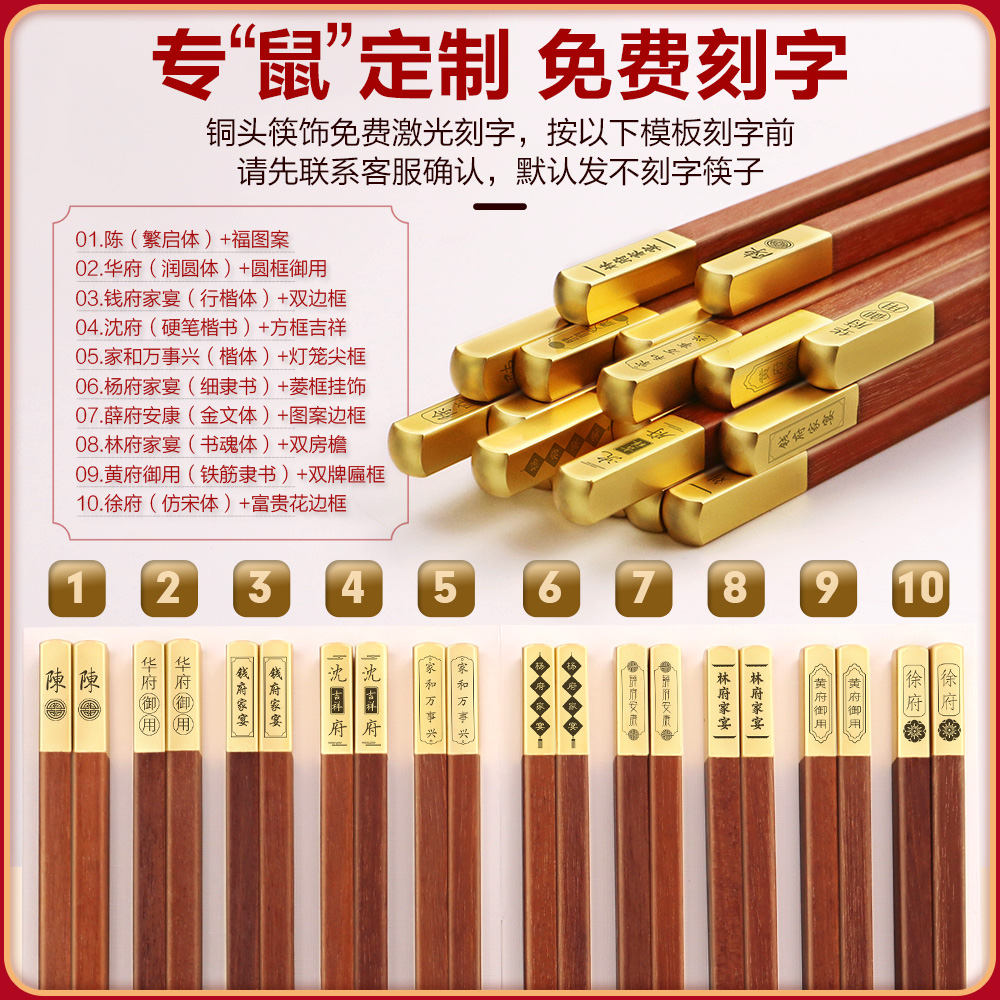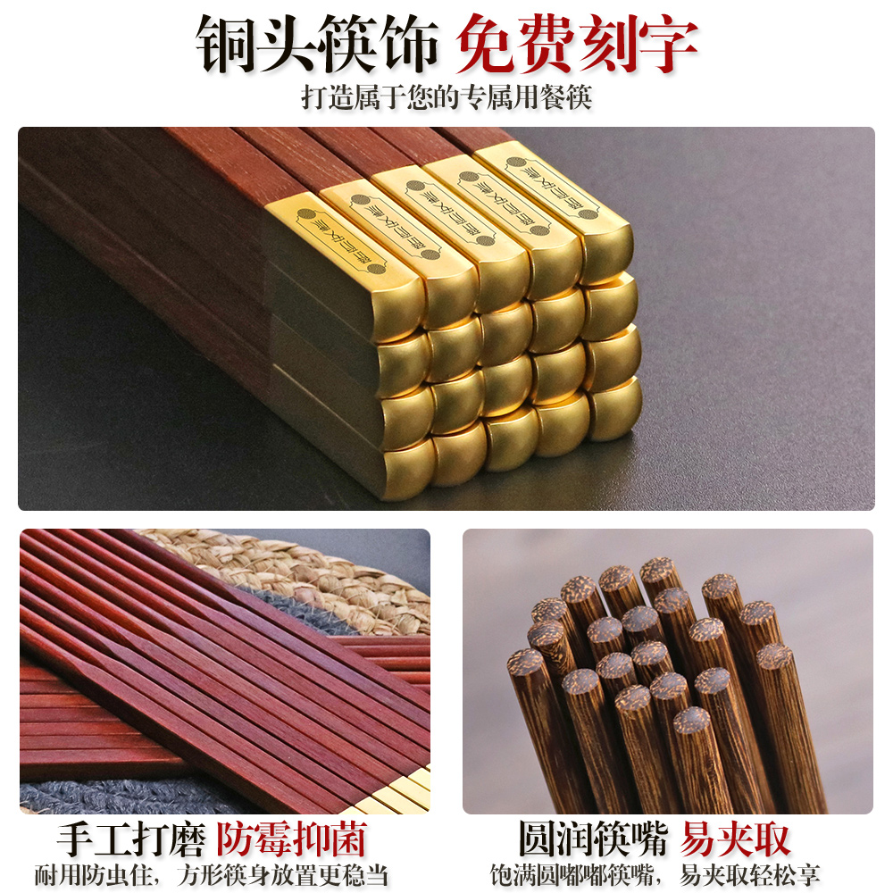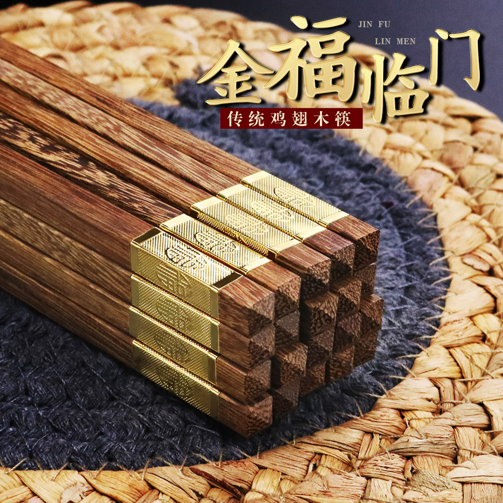 High-grade solid wood household chopsticks chicken wing wood mahogany fast son 10 double sets of practical custom custom logo lettering