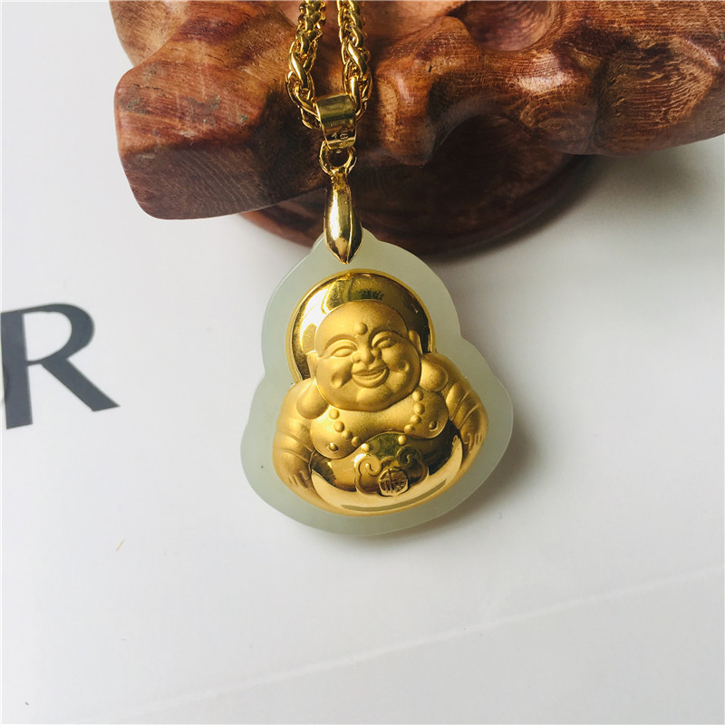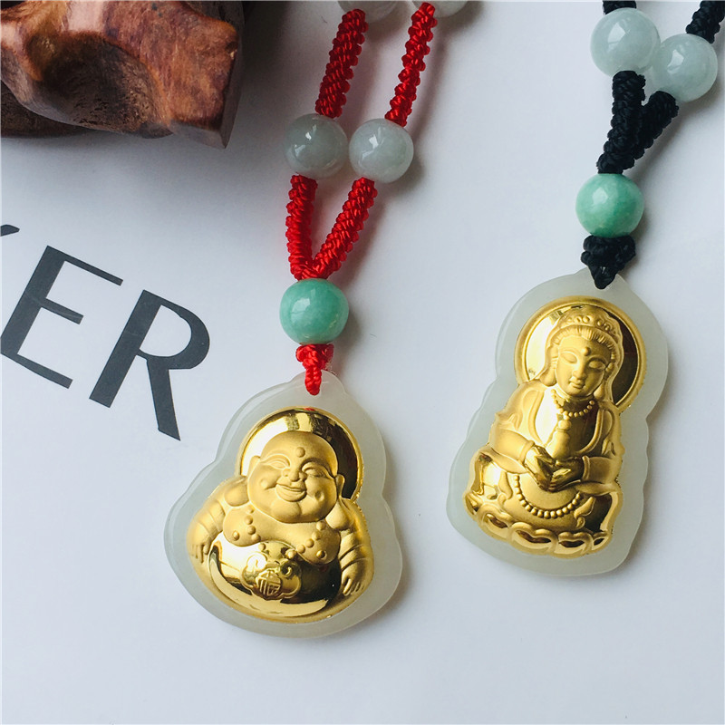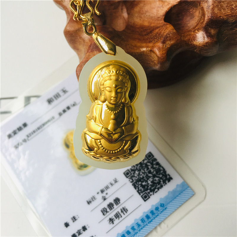 Foot Gold Inlaid Jade Guanyin Buddha Pendant Gold Jewelry and Tian Baiyu Mall Lever pendant necklace with male and female jade pendant lovers