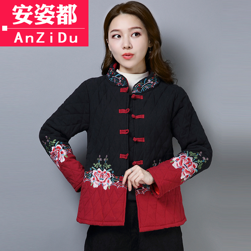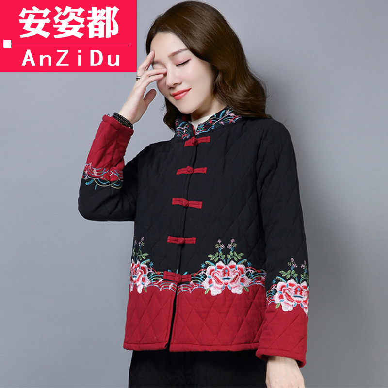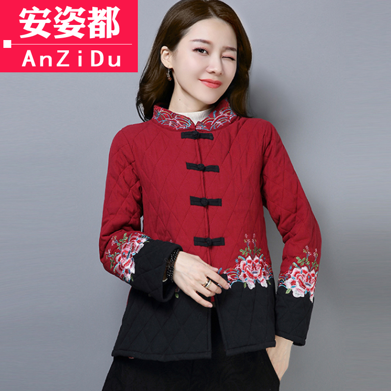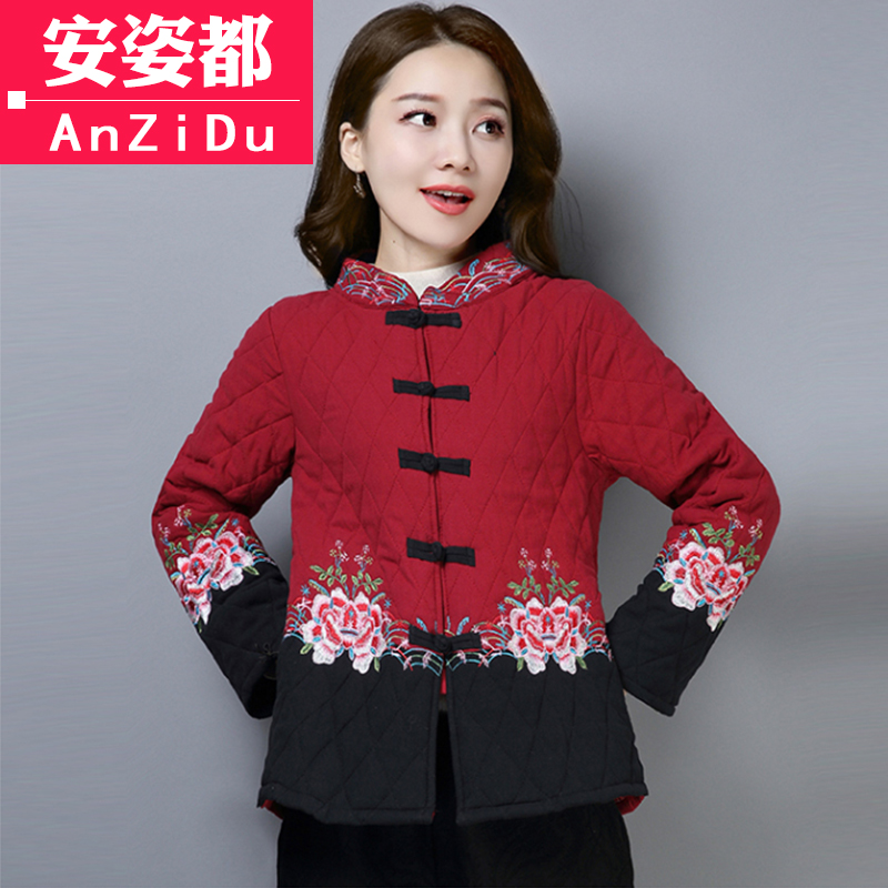 Tang Dress Cotton Padded Jacket Retro Cotton Linen Tea Suit Hanfu Autumn Winter China Wind Women Dress Qipao Jacket National Wind Embroidered Cotton Clothes