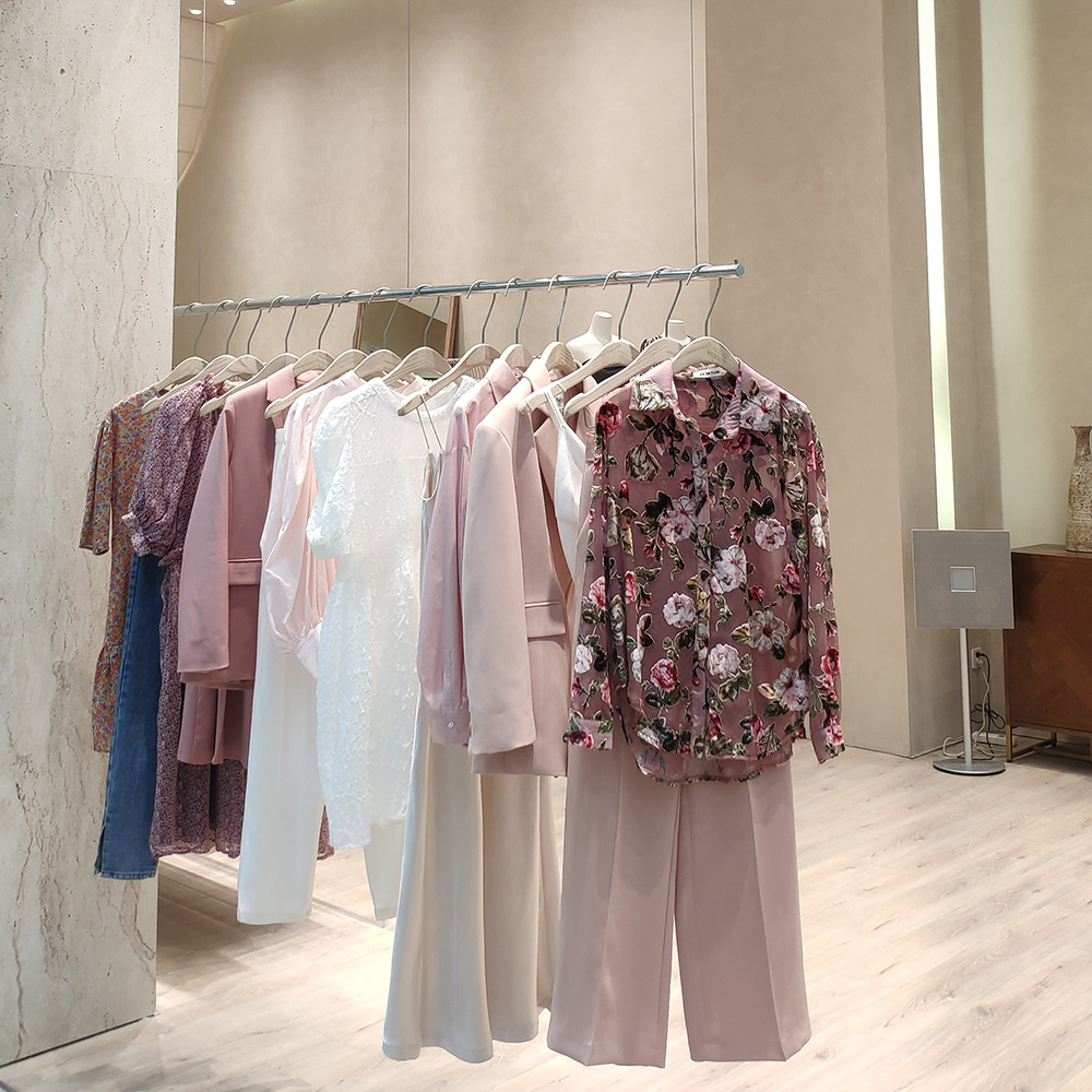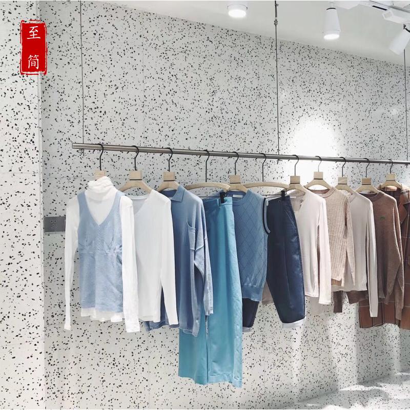 Clothing store clothes rail display stand steel wire ceiling hanging hanger women's clothing store stainless steel side hanging shelf ins