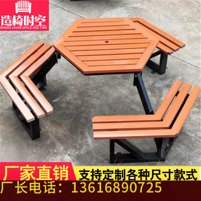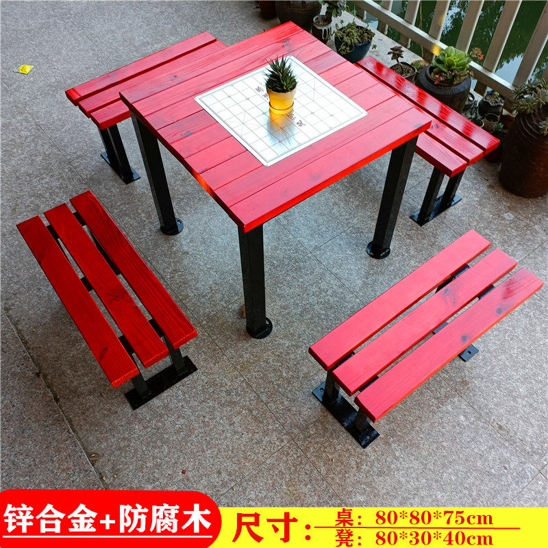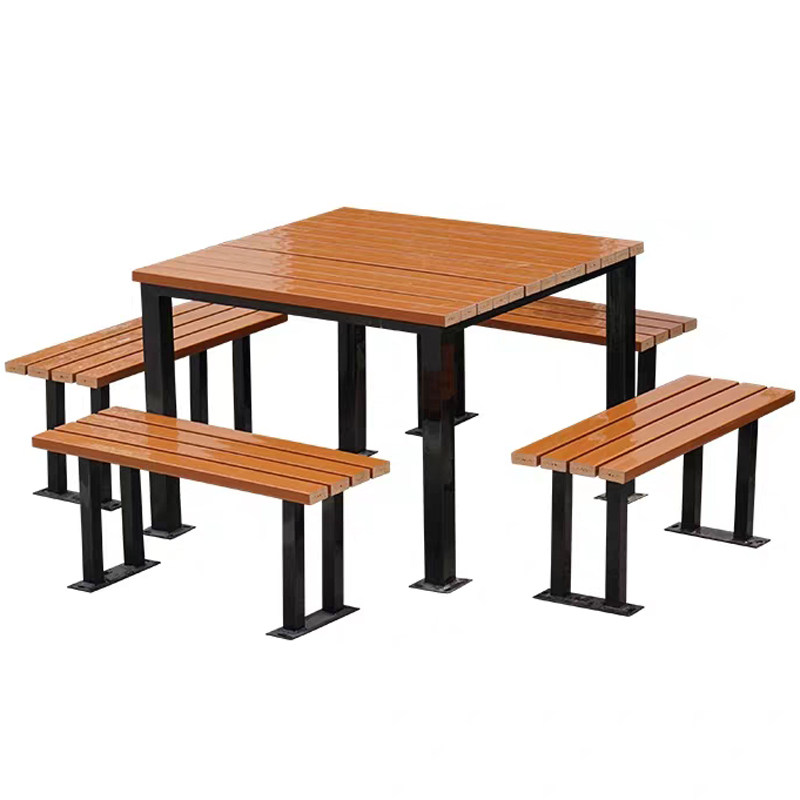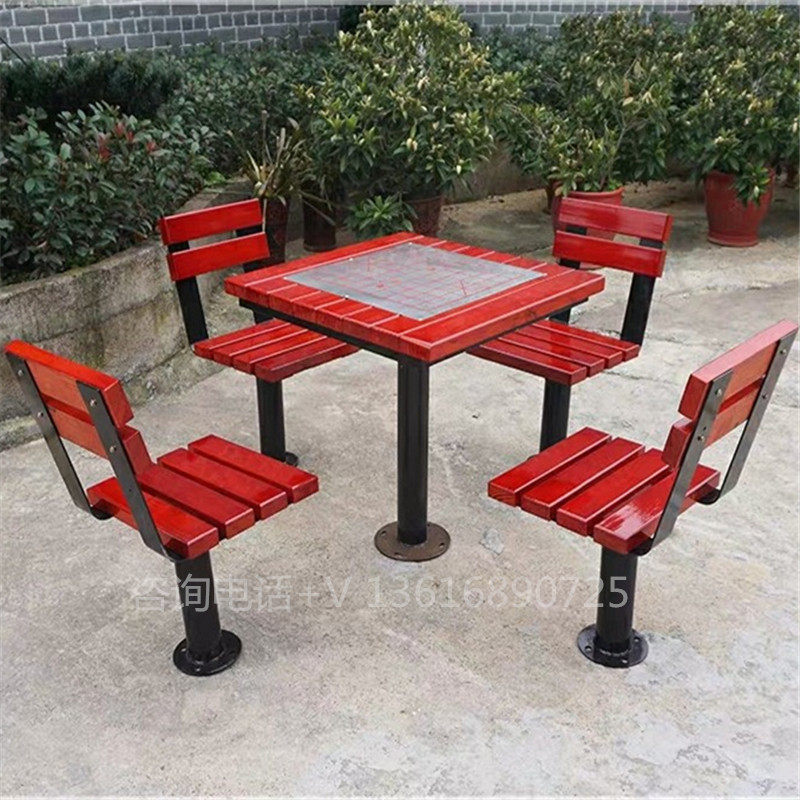 Manufacturer set to make outdoor park table solid wood plastic wood cover table and chairs park chess table community courtyard leisure table and chairs