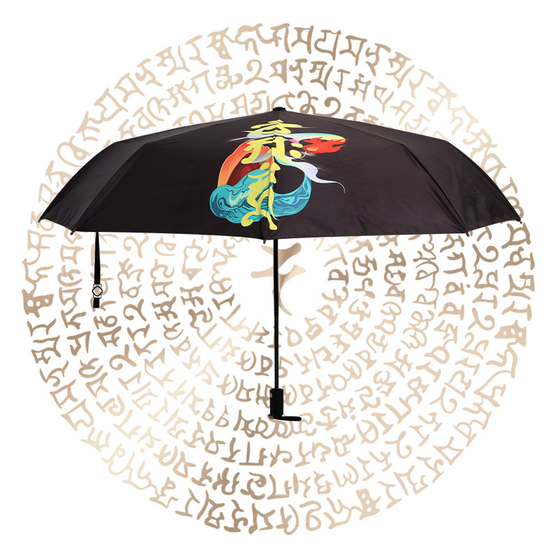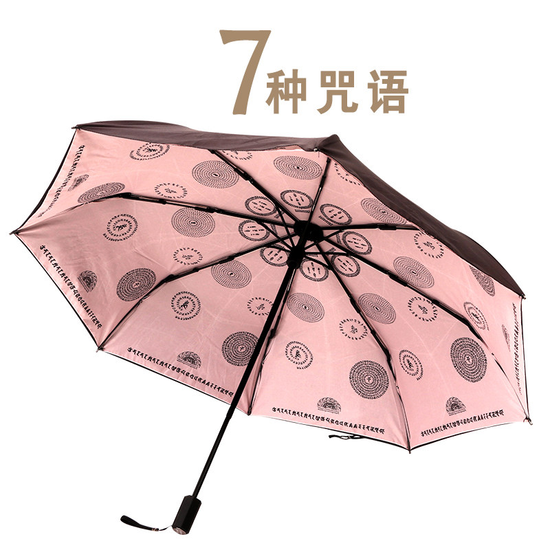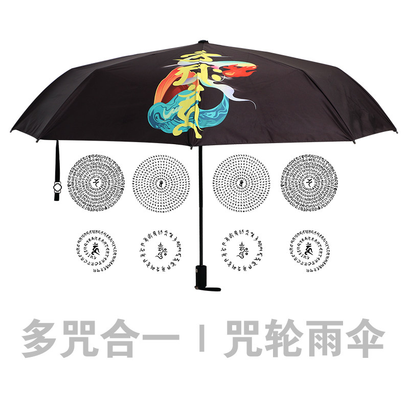 Mantra wheel blessing parasol Dual-use umbrella Immobile Buddha heart mantra Pharmacist Buddha Anti-UV folding Buddha small black umbrella