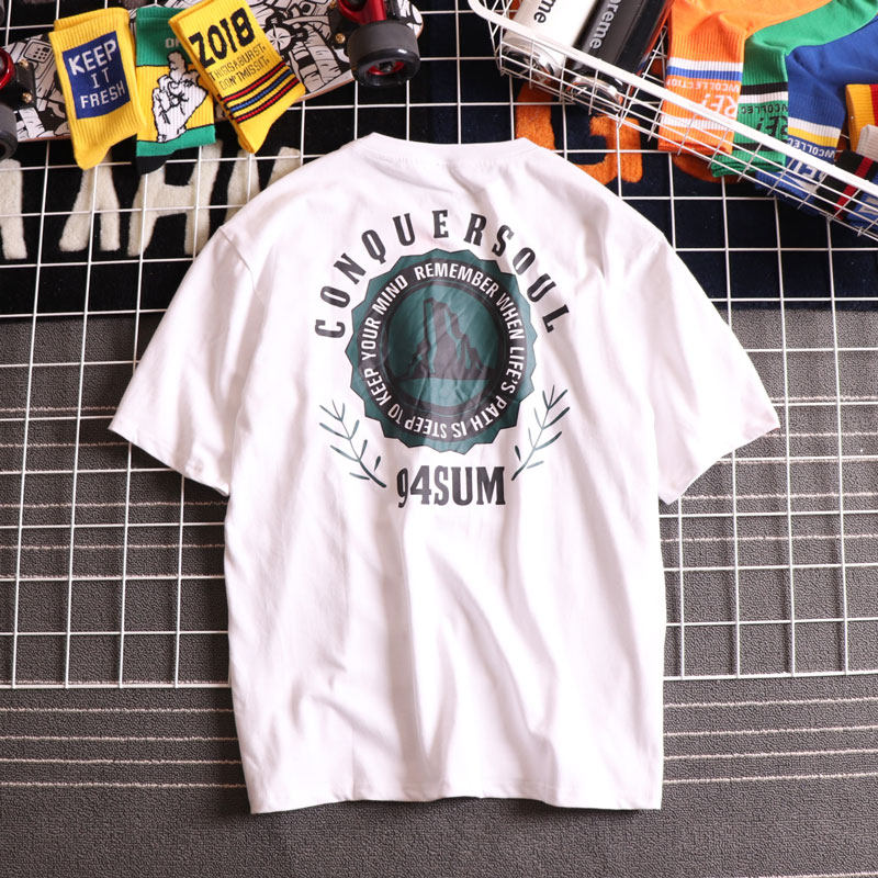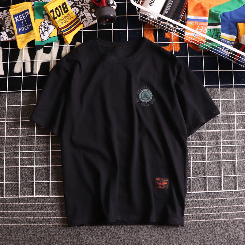 Hong Kong Tide Hip Hop Print Short-sleeved Male Double Line Loose Couple Half-sleeved Personality Day Dress