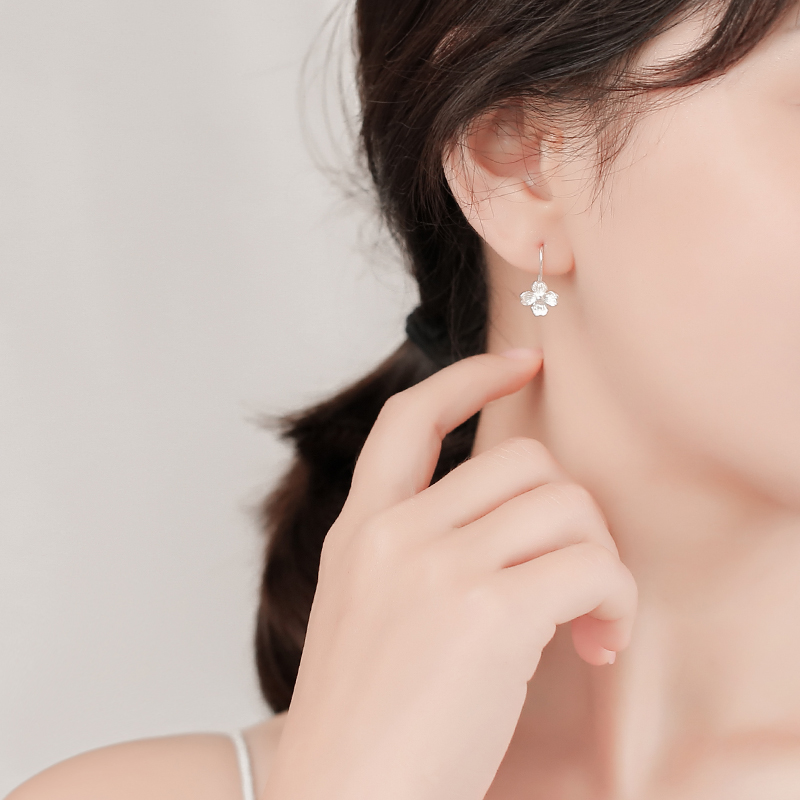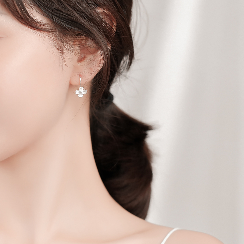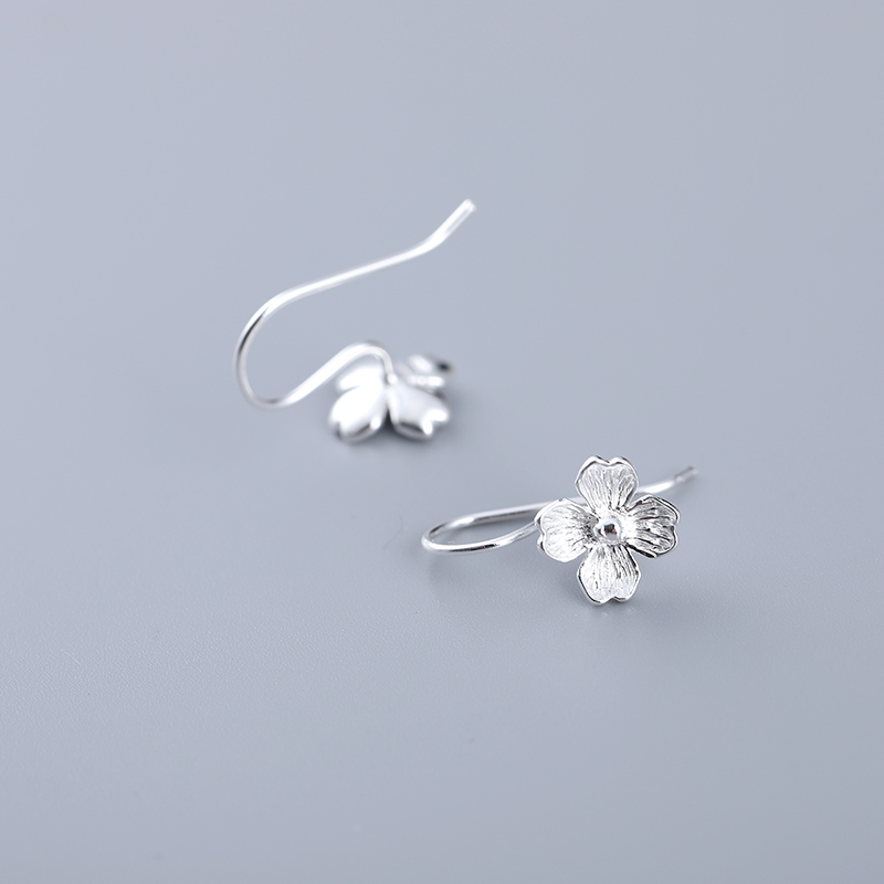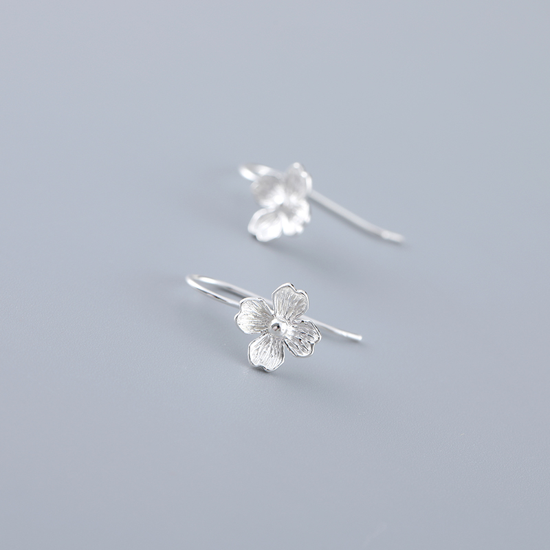 925 Small silver flower ear nails female long - style Korean ear decoration female red ear crash about 2022 earrings