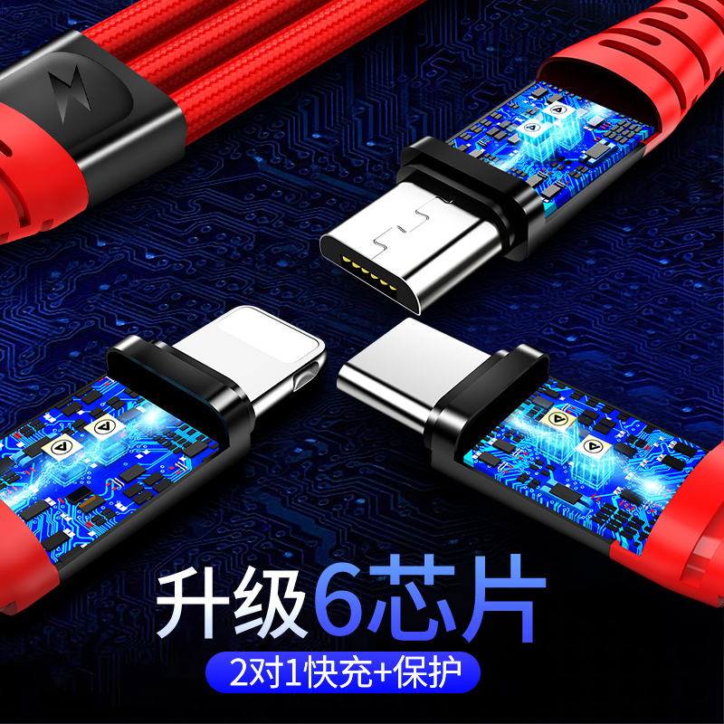 Data line Three-in-one charging wire device fast-charging-one-three-phone application Apple two-in-one drag multipurpose multi-function multi-head Android vehicle three-head three-wire 5a punch 3 for 3-use lead 2 m
