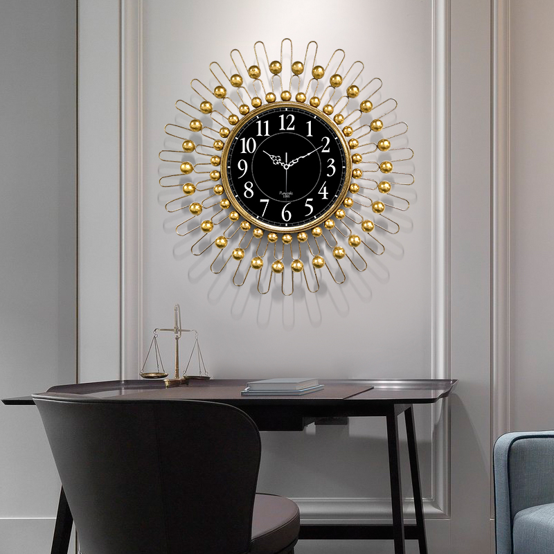 American fashion creative clock Mute Wrought iron bedroom watch Living room wall decoration Light luxury European art wall clock