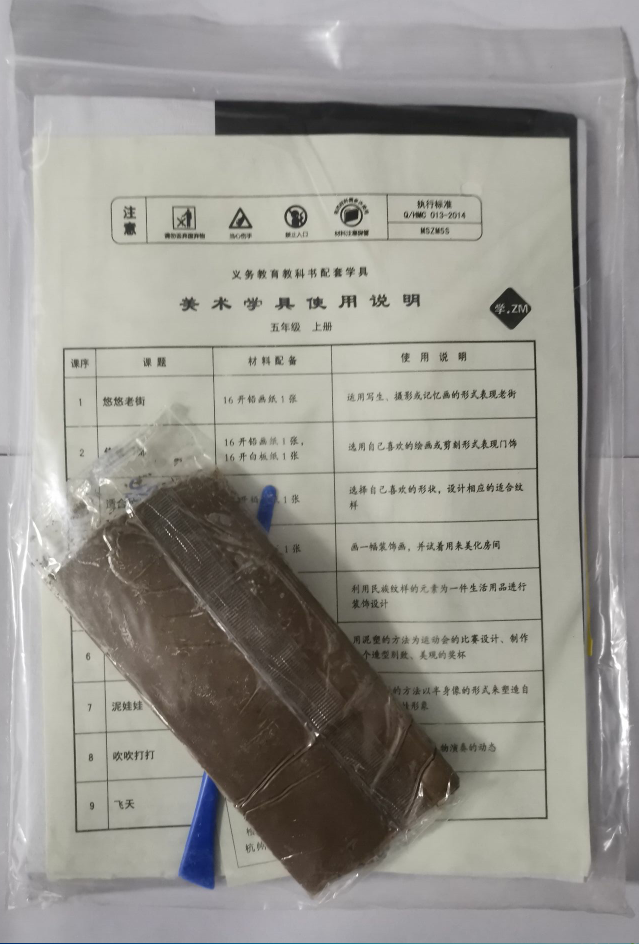 2022 Zhejiang and American version of primary school art teaching aids fifth grade first volume art teaching aids bag learning ZM stationery bag for national use