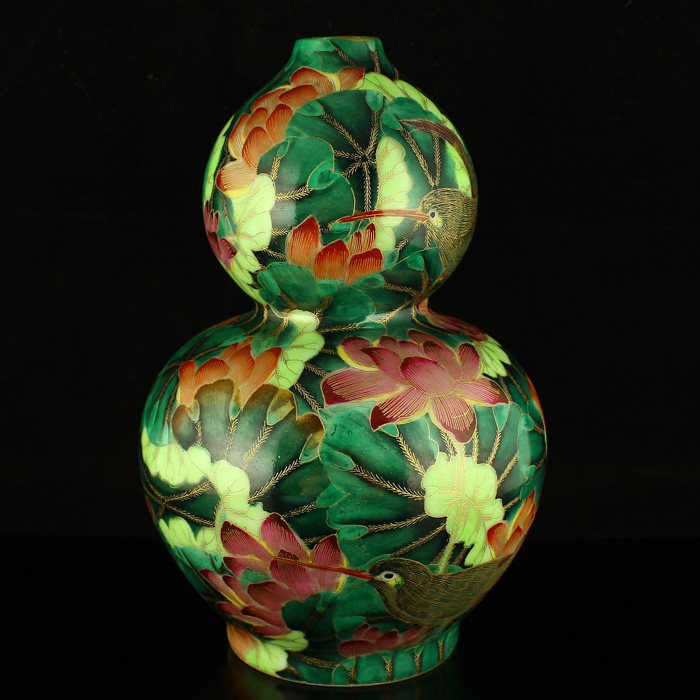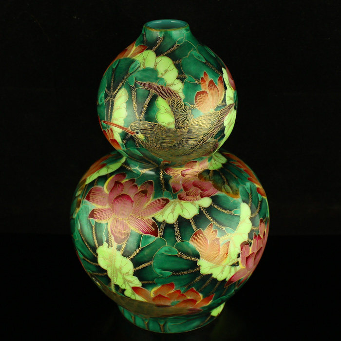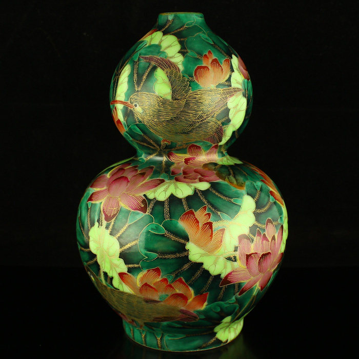 One-mouth-price porcelain pendulum with a pinch of gold silk enamel Vase Bird-in-the-flower Flower Aroma