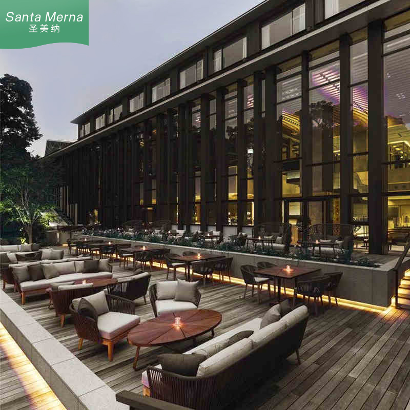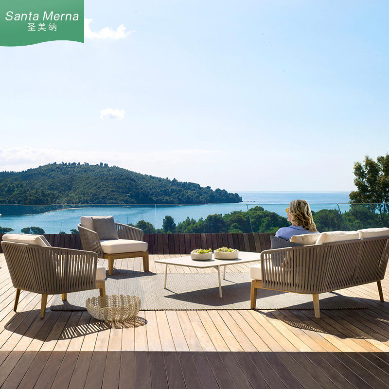 Outdoor sofa open-air teak rattan sofa courtyard combination outdoor balcony leisure solid wood rattan sofa furniture
