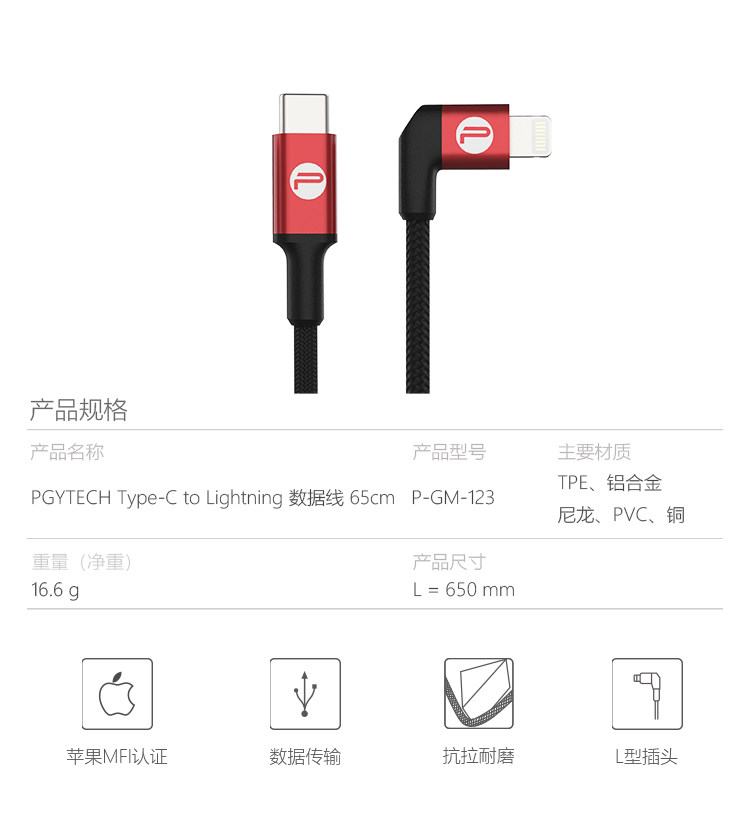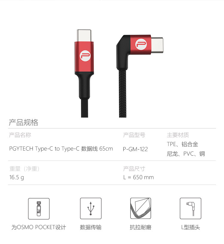PGYTECH Type-C to Lightning data cable for DJI OSMOACTION POCKET accessories