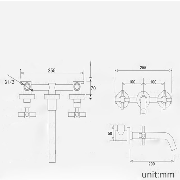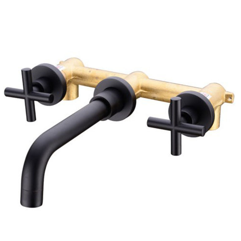 Hotel all copper concealed hot and cold water dragon household head basin faucet brushed gold double handle double switch faucet mixing valve