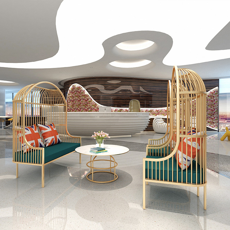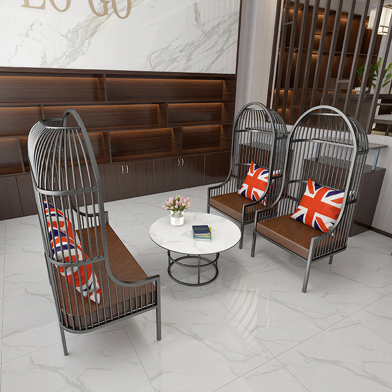 Iron birdcage sofa leisure club hotel lobby lounge reception sofa card seat birdcage chair sofa soft decoration