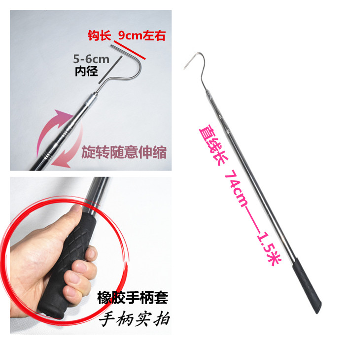 Snake hook tongs catch rice field eel stainless steel loach tongs catch fish snake hook tool telescopic rod snake device 1 5 m 80 non-clip