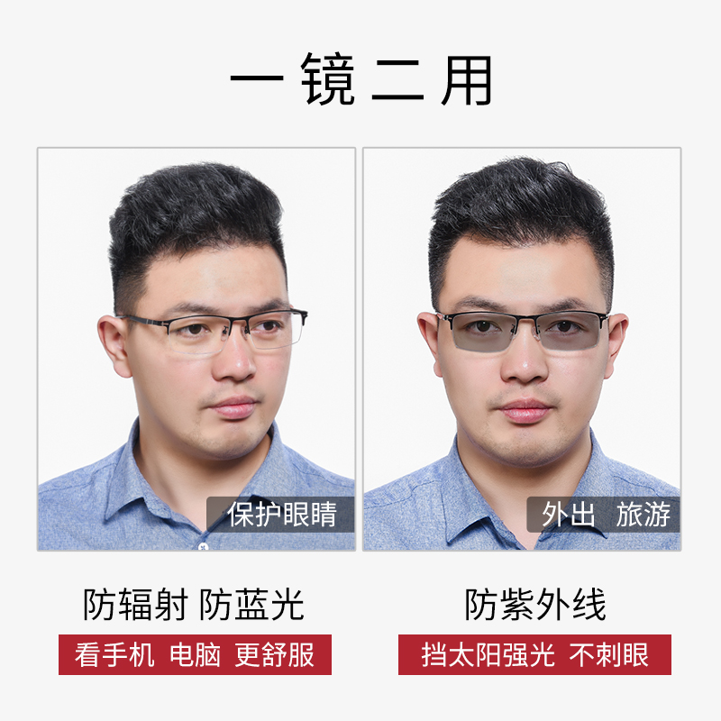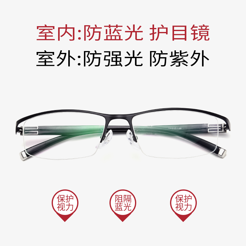 Discoloration glasses nearsightedness men's metal half-frame anti-blue light anti-radiation can be matched with a flat light protective eye Danyang eyes