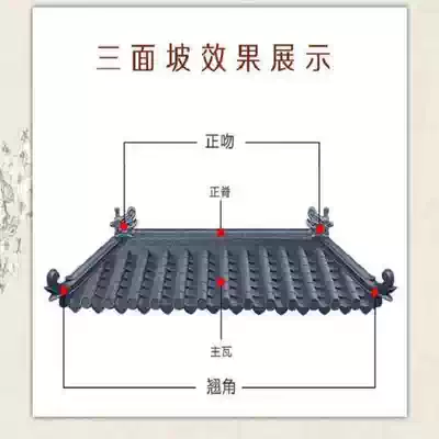 Small tilting angle Antique resin tile tilting foot eaves decorative plastic glazed tile Antique eaves fake door Ancient building tile