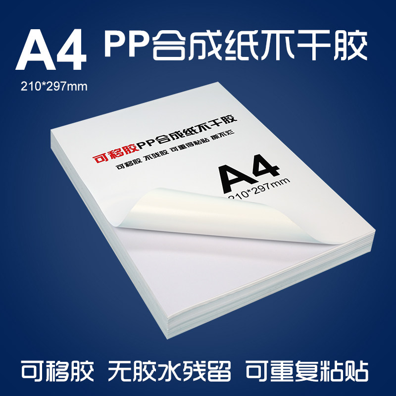 Removable adhesive a4 removable adhesive PP synthetic paper A4 white bright face matt laser inkjet printing Label sticker a4 removable back glue No residual adhesive Repeat adhesive label paper