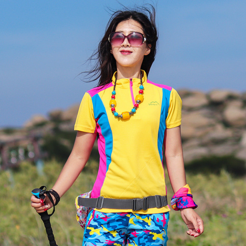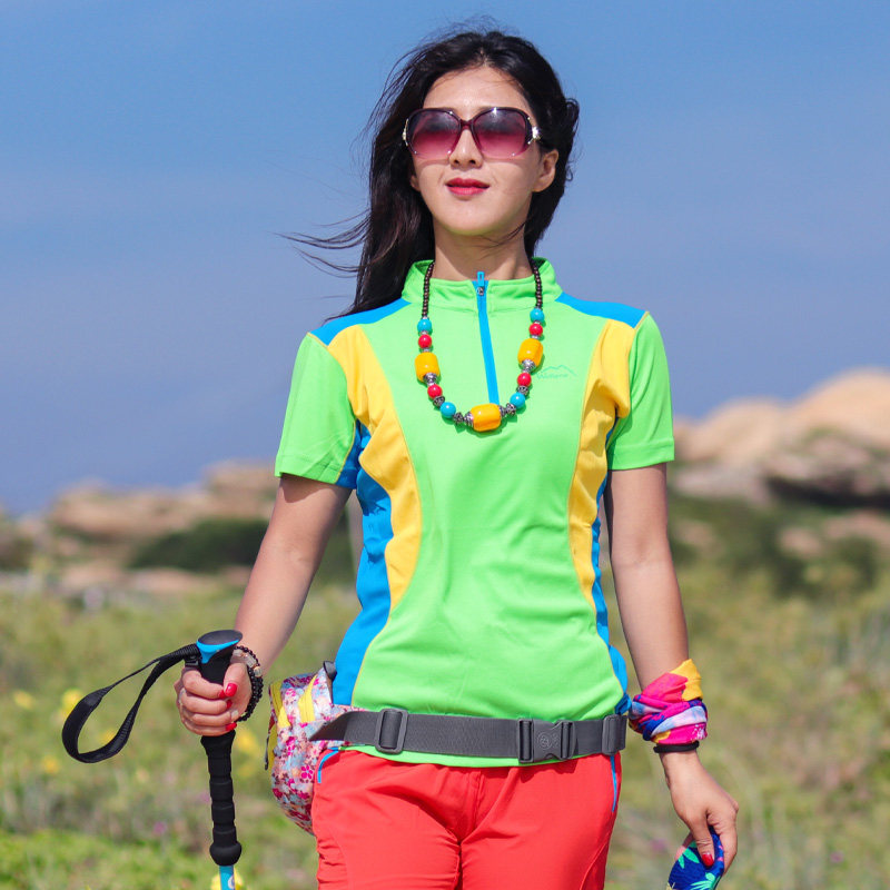 Outdoor quick-drying women's short-sleeved T-shirt undershirt stand-up collar is thin, moisture-wicking, breathable, sports, mountaineering, hiking, thin section
