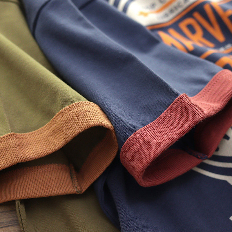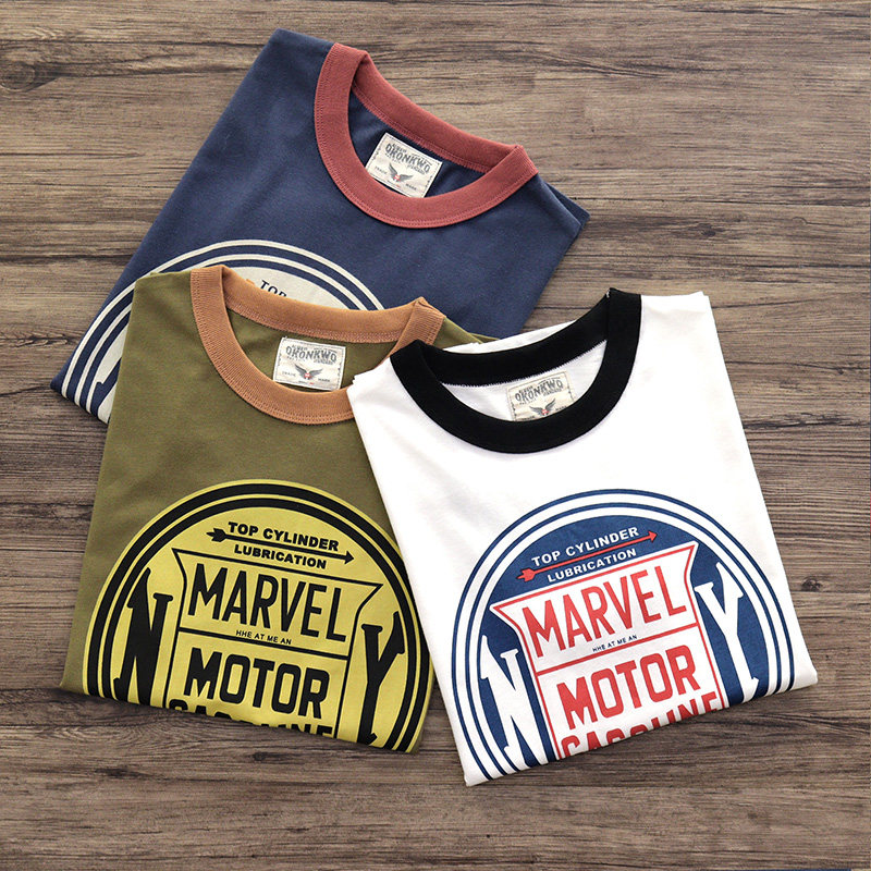 250G double yarn heavy American retro BF ventilated locomotive letter printing T-shirt thick short-sleeved T-shirt men's and women's college