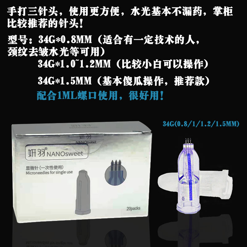34G three-needle 0 8mm A 34G three-needle 0 8mm a box (20 boxes)34G three-needle 1mm A 34G three-needle 1mm a box(20 boxes) 34G three-needle 1mm A 34G three-needle 1mm a box (20 boxes) 34G three-needle 1mm a 34G three-needle 1mm a box (20 boxes