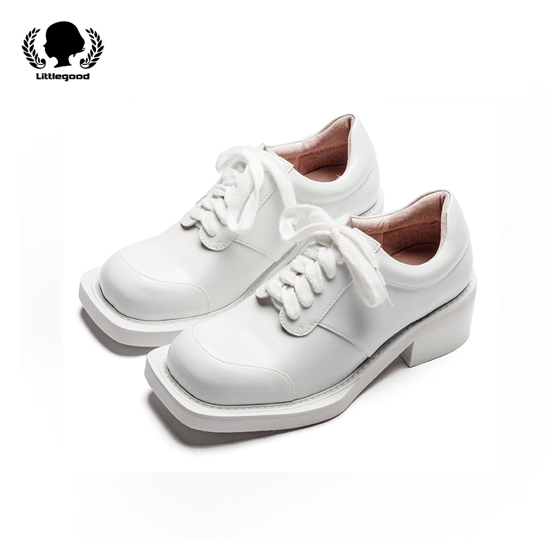 littlegood×MOF joint British small white shoes women's head independent design mid-heel all-match small leather shoes