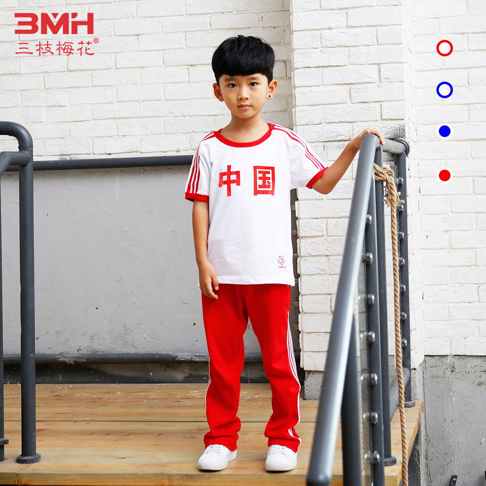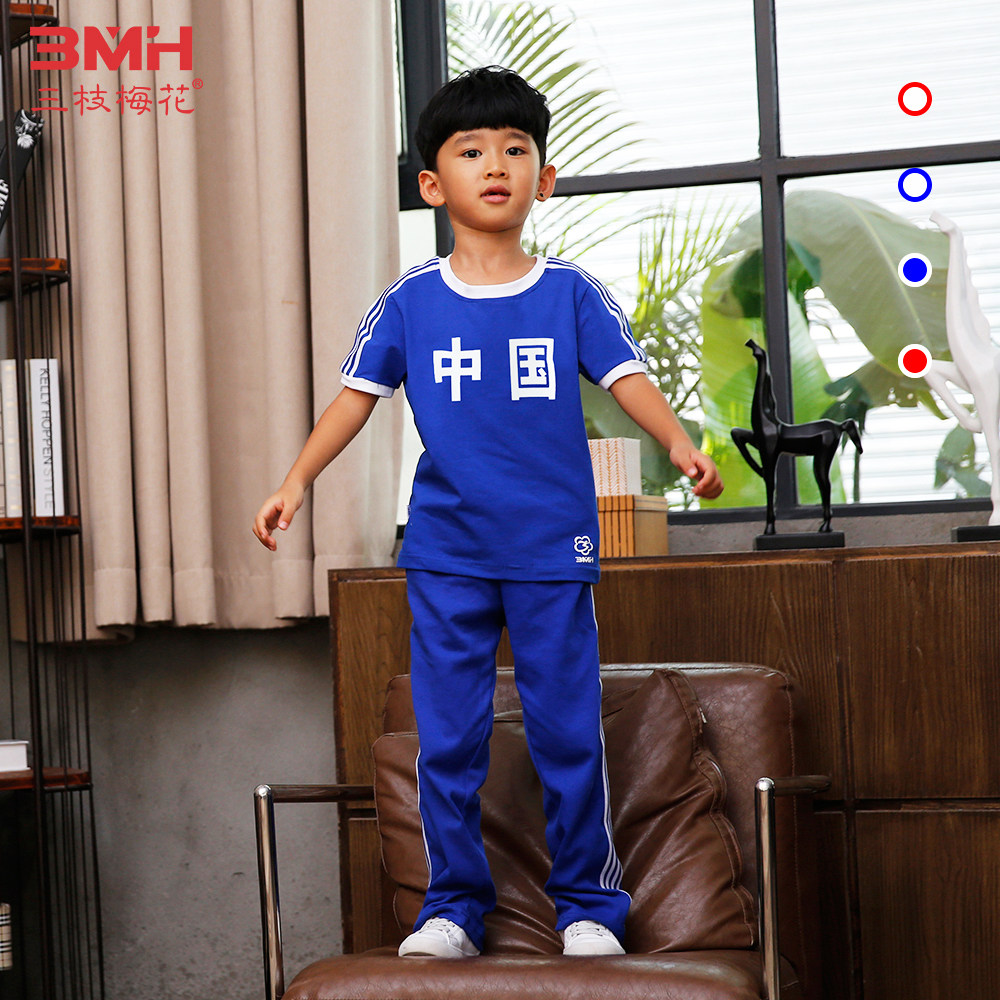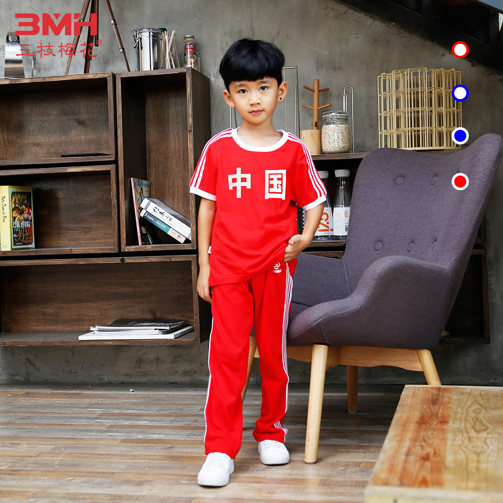 Three branches of plum blossom brand children's sports suit 2022 summer new medium and old children short-sleeved T-shirt slacks thin