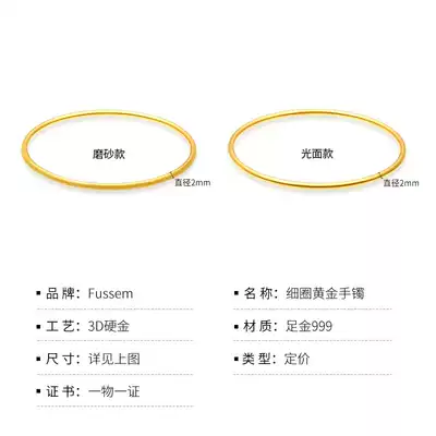 999 Pure gold Sansheng III Gold bracelet Female fine aperture bracelet Plain ring Pure gold bracelet Matte 3D hard gold