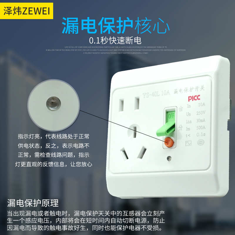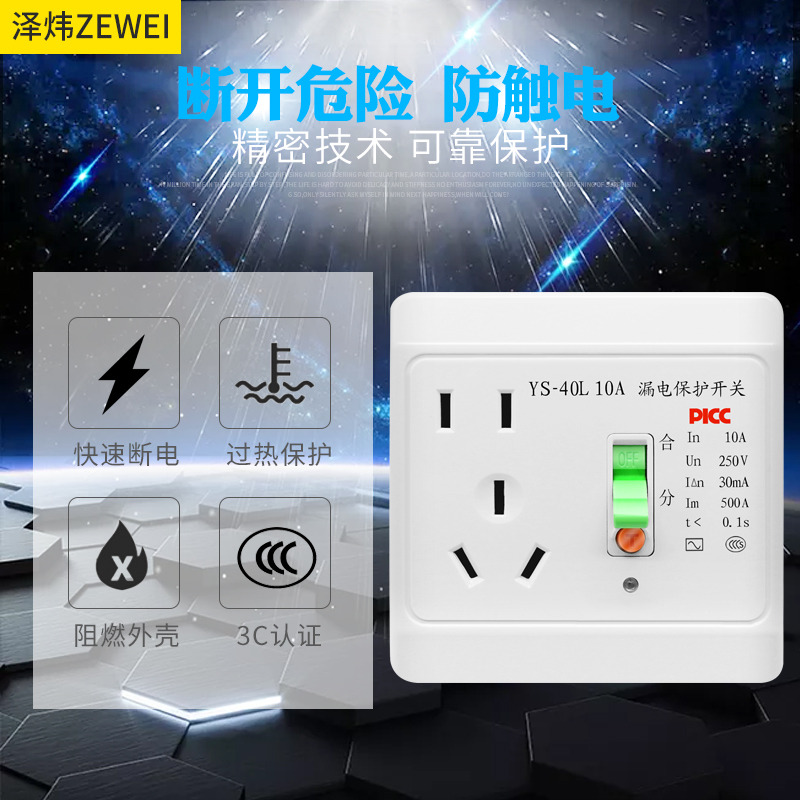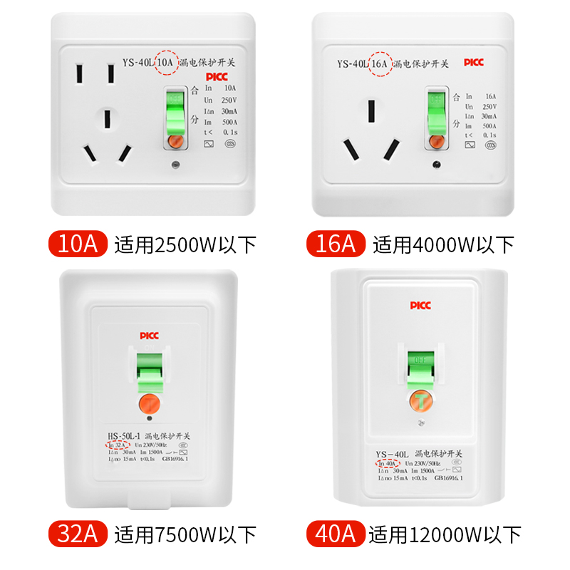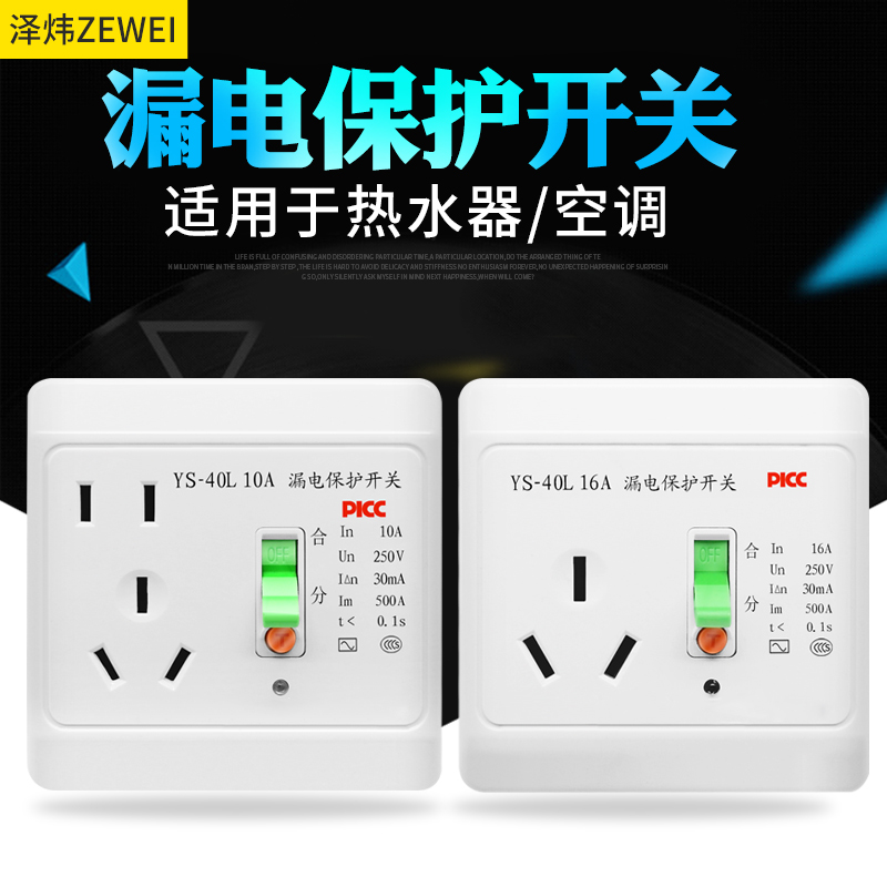 Air conditioner electric water heater Leakage protection switch Leakage protection air switch 86 type with socket 10A 16A concealed type