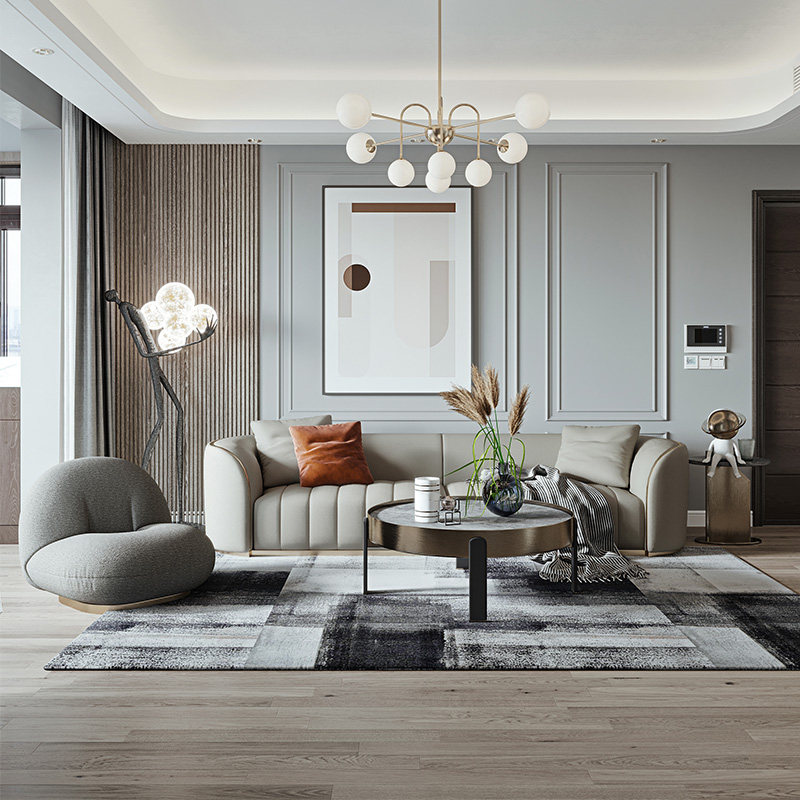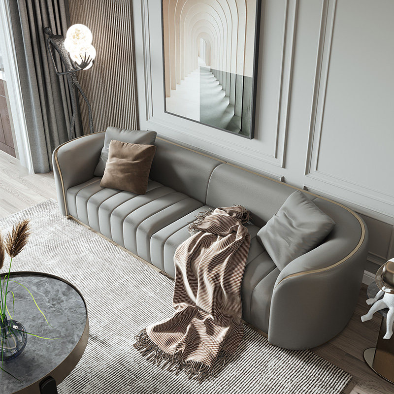 Rudai post-modern light luxury leather art sofa Italian minimalist sofa style first layer cowhide three-person living room sofa