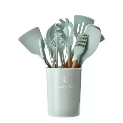 Wooden handle silicone kitchenware 11-piece set-fresh green wooden handle silicone kitchenware 11-piece set-magic ash wooden handle silicone kitchenware 11-piece set-pink