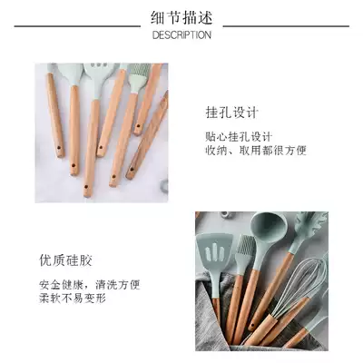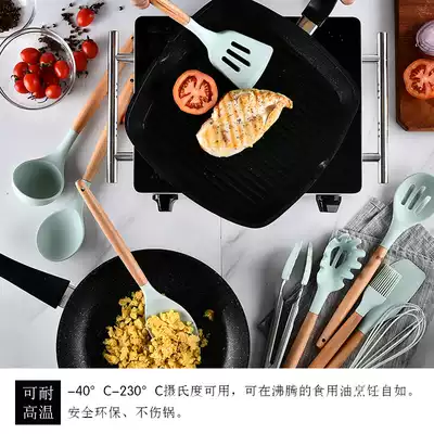 Left hand mall wooden handle silicone kitchenware non-stick pot stir-fry dish spoon home kitchen 11 sets