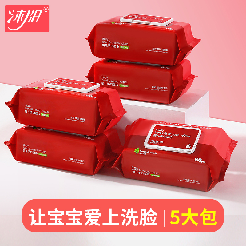 Muyang thickened plus size baby wipes Newborn hand and mouth fart special baby and toddler wet wipes 80 pumping*5 large packs