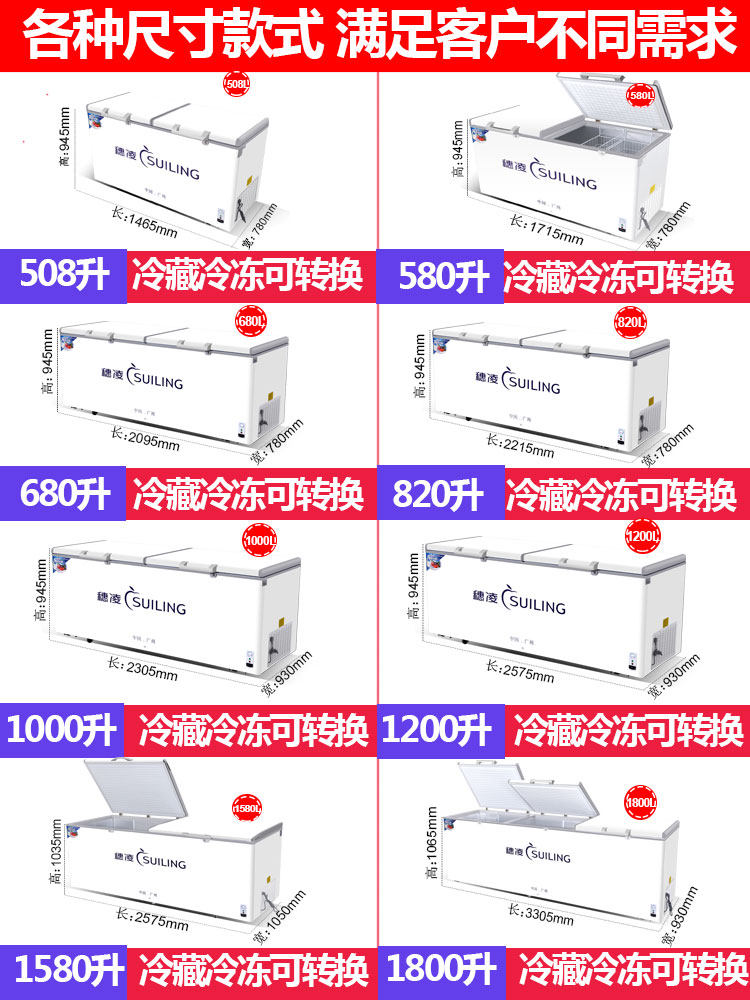 Ear Ling BD-508 Ice cabinet Commercial large capacity Refrigerated horizontal refrigerator Seafood Frozen Meat Freezer Tea Preservation Cabinet