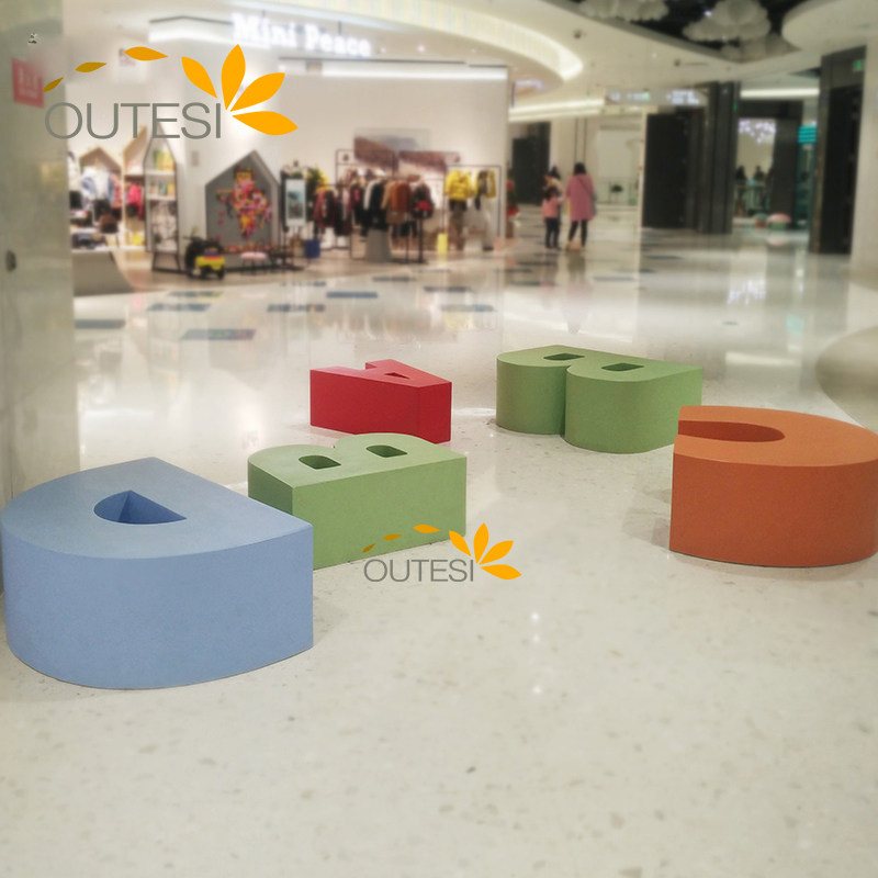 Fiberglass Leisure Seat Shopping Mall Letter Stool Custom Outdoor Garden Landscape Rest Chair Square Shaped Stool