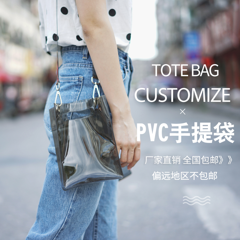 Transparent bag nanaPVC single shoulder inclined satchel plastic ins nets red active advertising bag customised logo-Taobao
