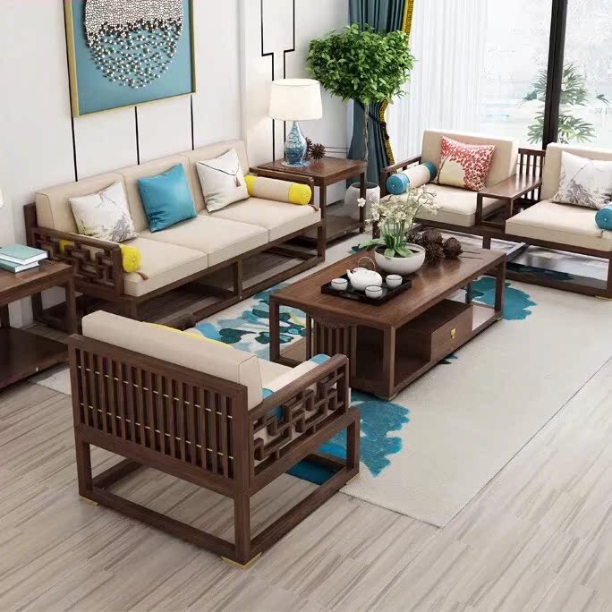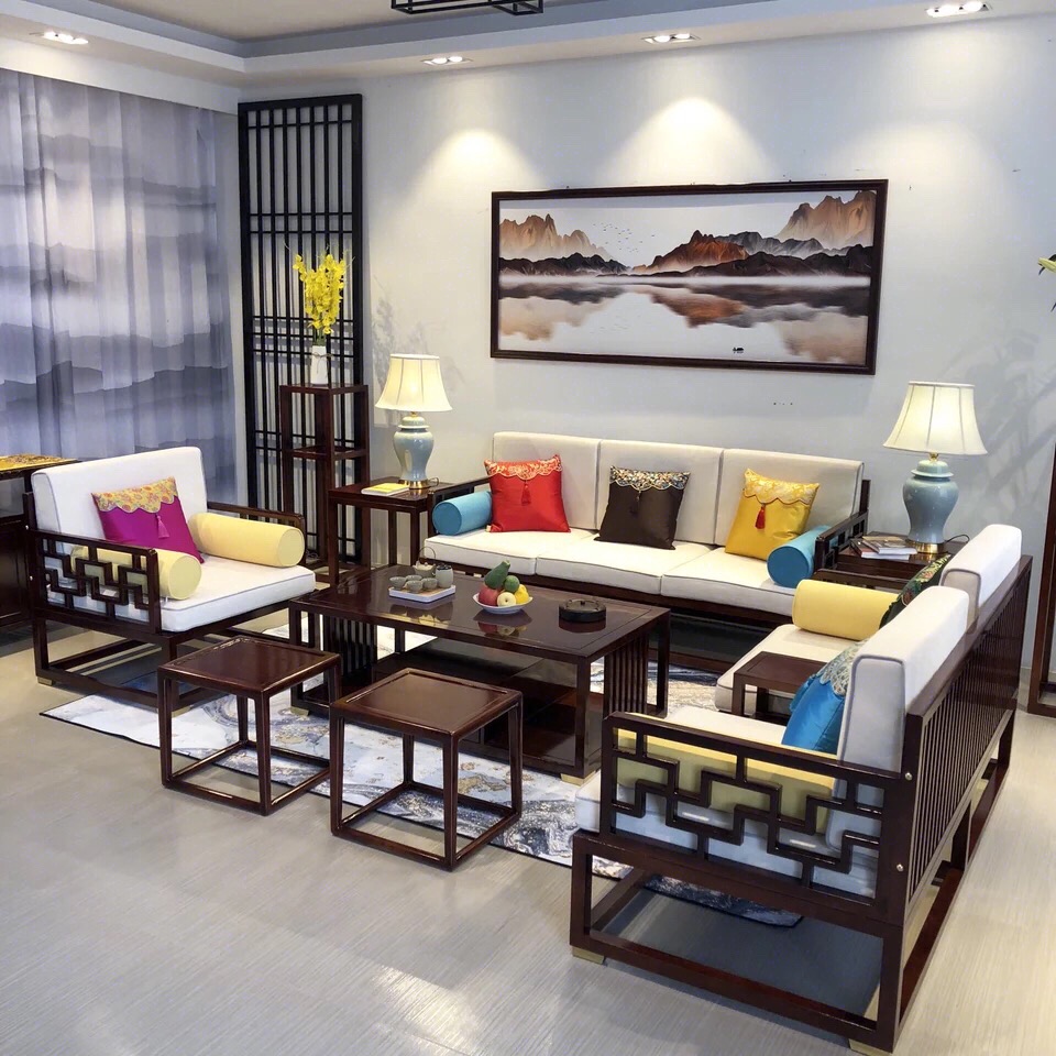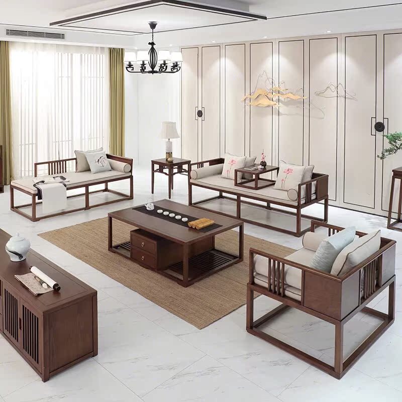 New Chinese Zen sofa modern living room solid wood sofa combination hotel fabric sofa homestay furniture customization