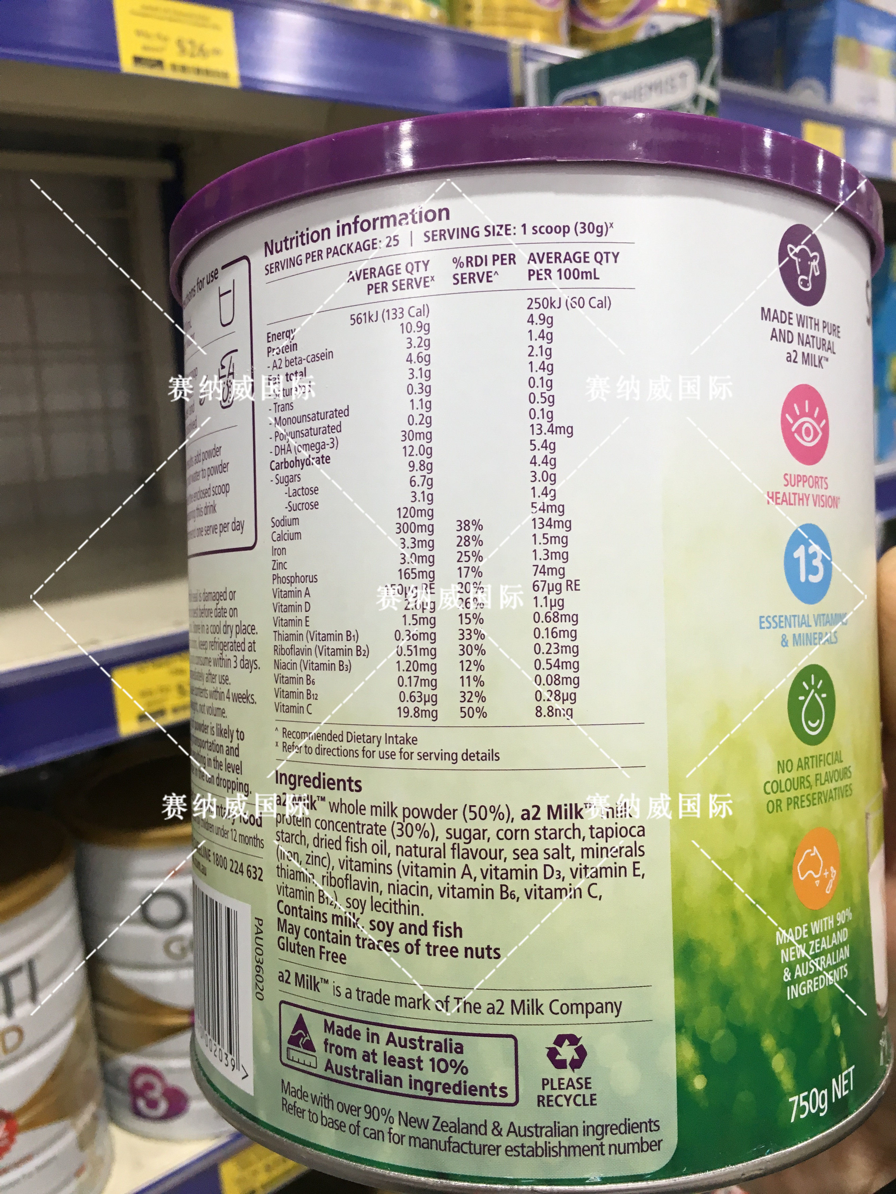 3 cans of 500 yuan My Australia direct mail a2 smart 4-12 years old children grow smart nutrition milk powder 750g