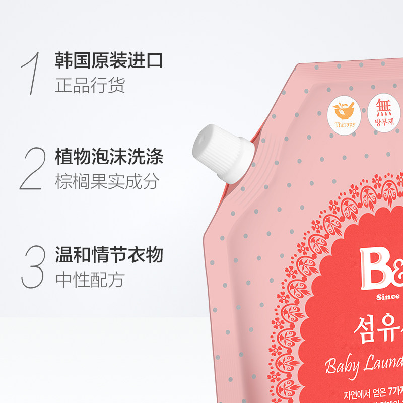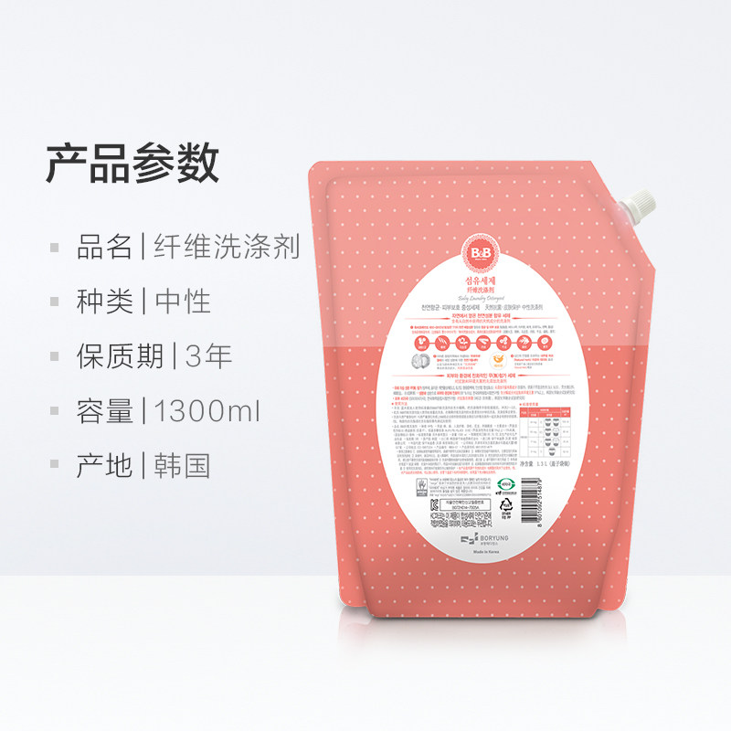 Korea imported B&B Baoning Baby BB Laundry Liquid 1300mL bagged baby with mild plant ingredients