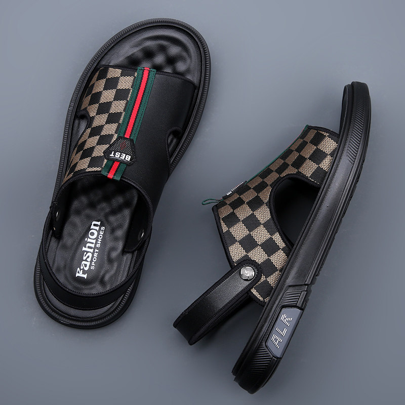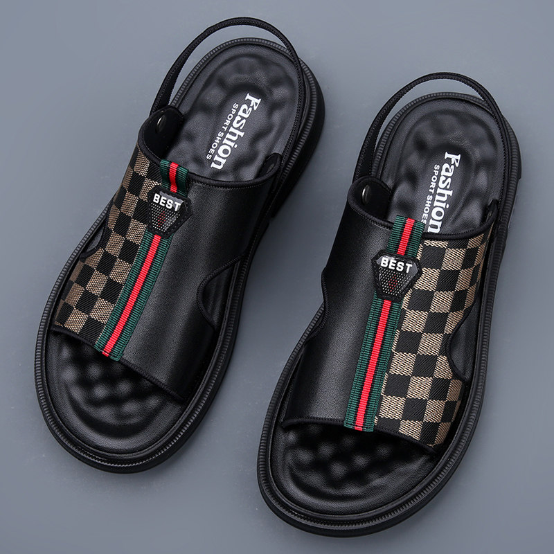 Slippers men's 2022 new summer outdoor leisure beach net red sandals dual-use trend outside wear one word sandals