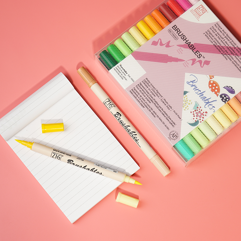 Japan KURETAKE Wu Bamboo 7700 Deep Shallow Double Head Bicolor Water Color Pen Brush Head Pen Hand Ledger Painting Hook line Soft Head pen Brush Lettering24 color